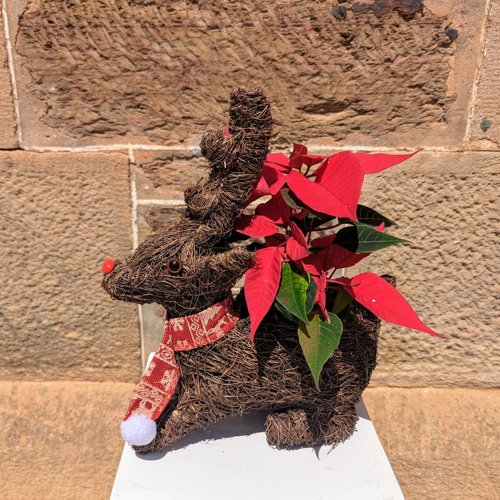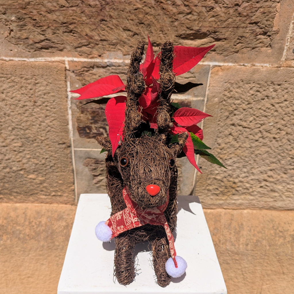 Grab a stunning Poinsettia in a festive reindeer planter, makes a beautiful gift.