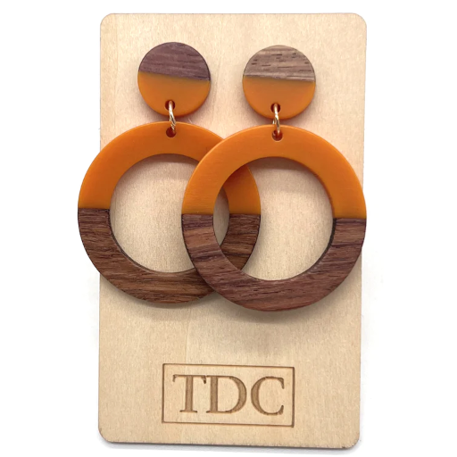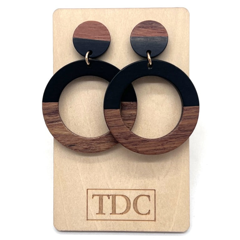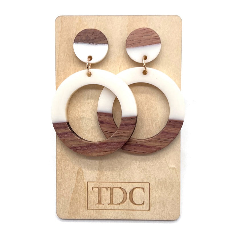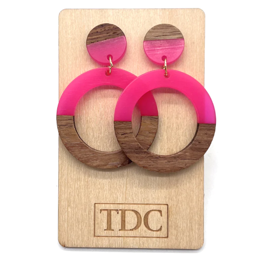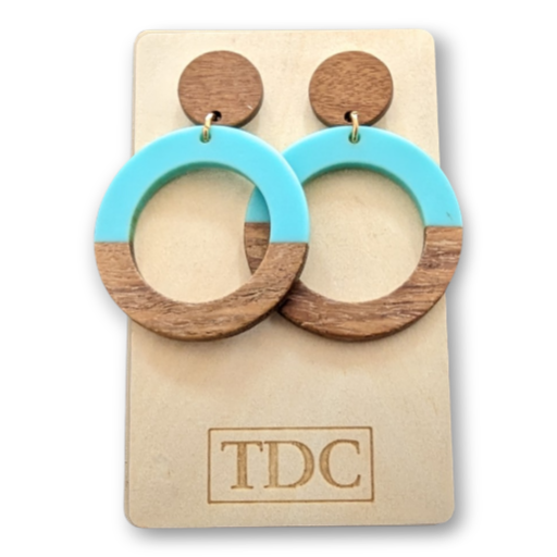 Handcrafted Timber & Resin Hoop Drop Earring - Various Colours