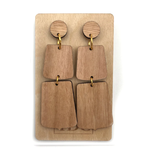 Introducing our sustainably handcrafted timber drop earrings. Ethically made in Australia, each pair is a testament to our commitment to sustainability. We carefully select locally sourced native timbers, including Tasmanian Oak, Jarrah and Tasmanian Myrtle, ensuring minimal environmental impact.