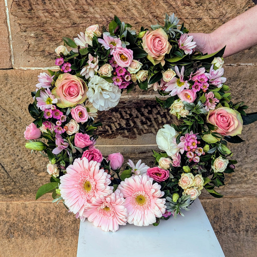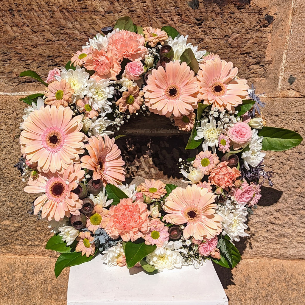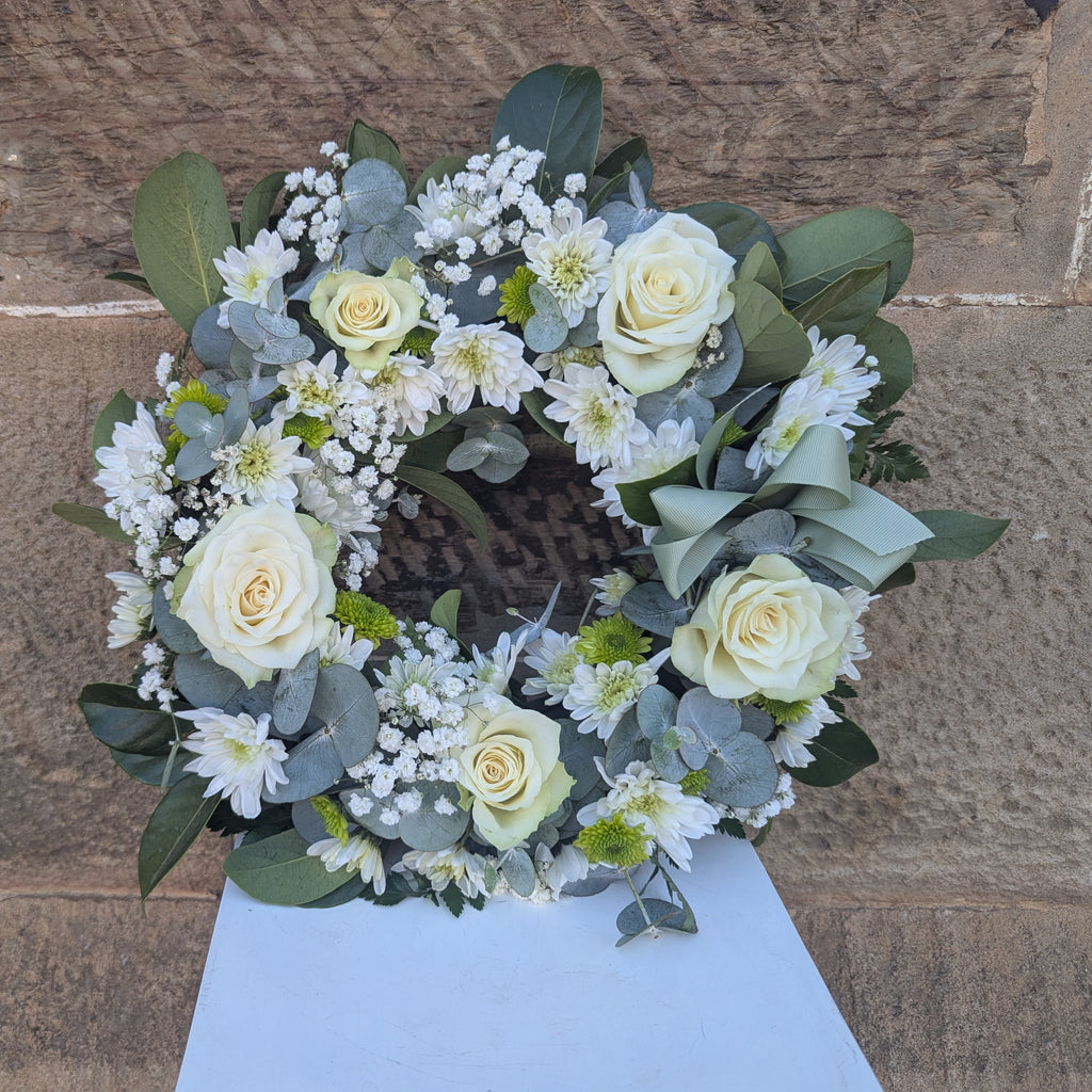 This elegant wreath is suitable for delivery to the funeral service or home (not suitable to be delivered to a workplace)